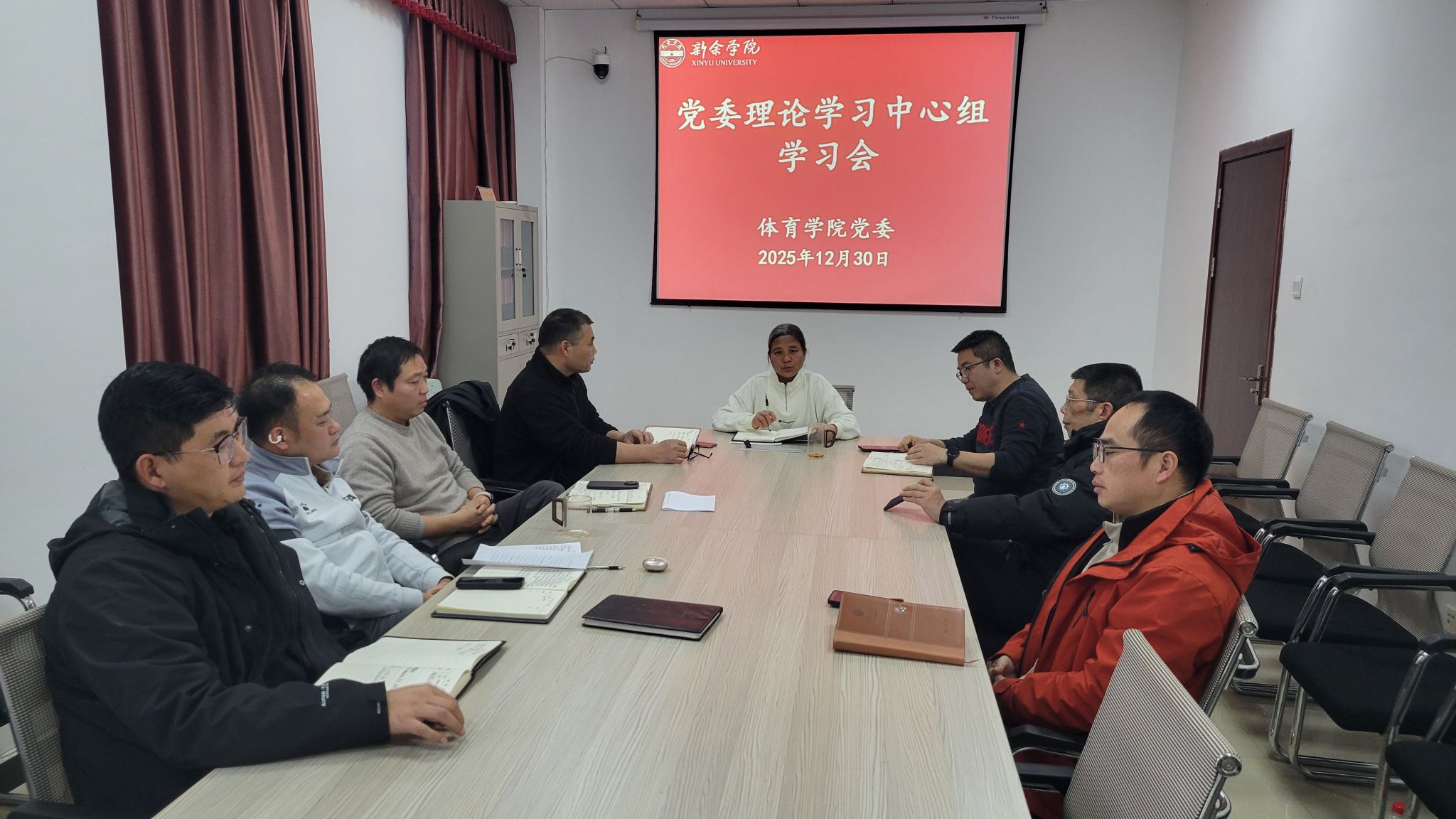 12月30日,体育学院召开12月份党委理论学习中心组学习会。学院党委书记杨继忠主持会议并作总结讲话,中心组全体成员参加学习,科室负责人列席会议。