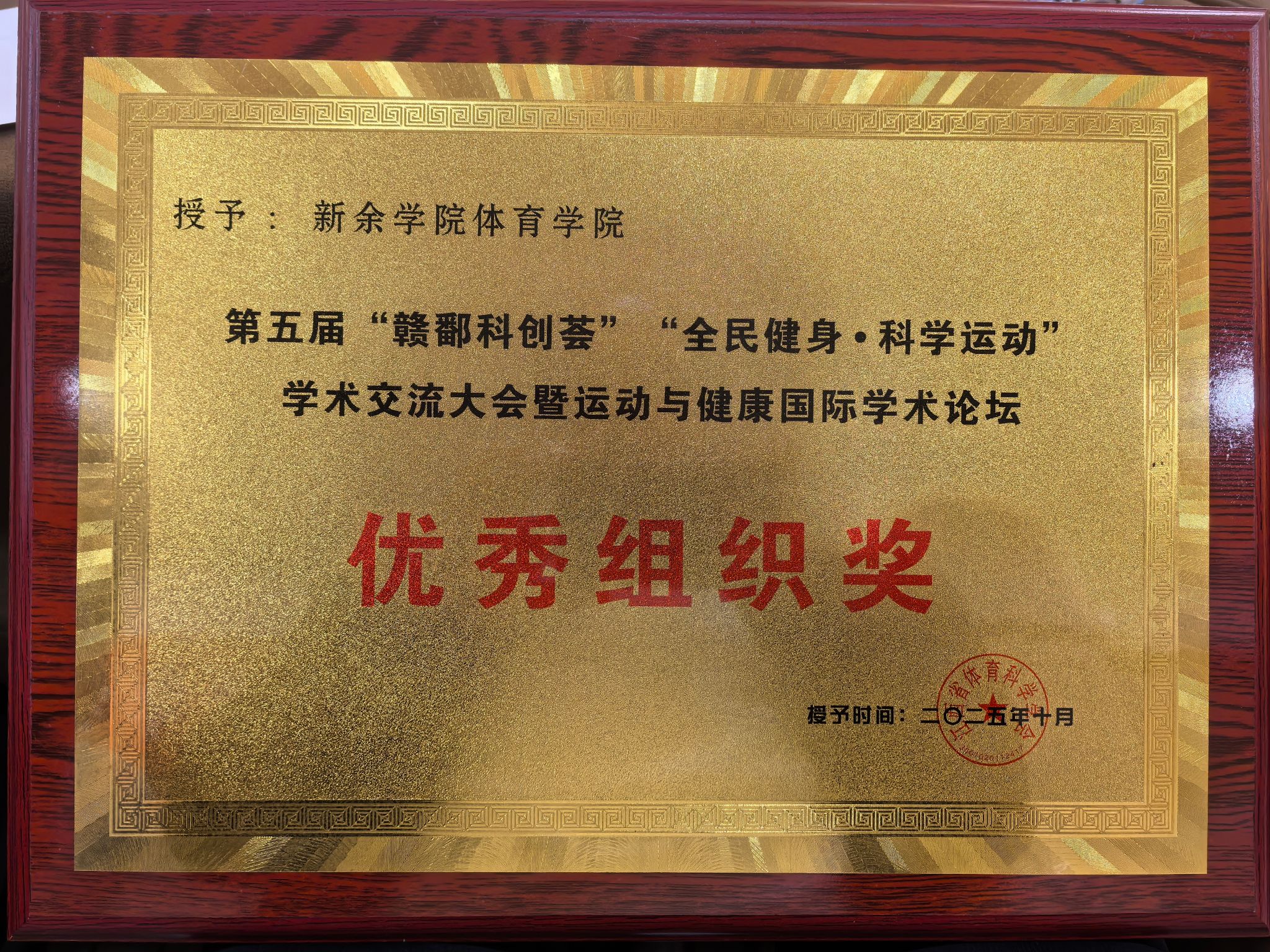10月24日至27日,江西省第五届“赣鄱科创荟”“全民健身•科学运动”学术交流大会暨运动与健康国际学术论坛在江西南昌成功举办。本届大会以“科学运动与健康促进”为核心主题,深度聚焦全民健身、科学运动指导、运动康复技术等热点议题。我院师生代表参赛,获得优秀组织奖。