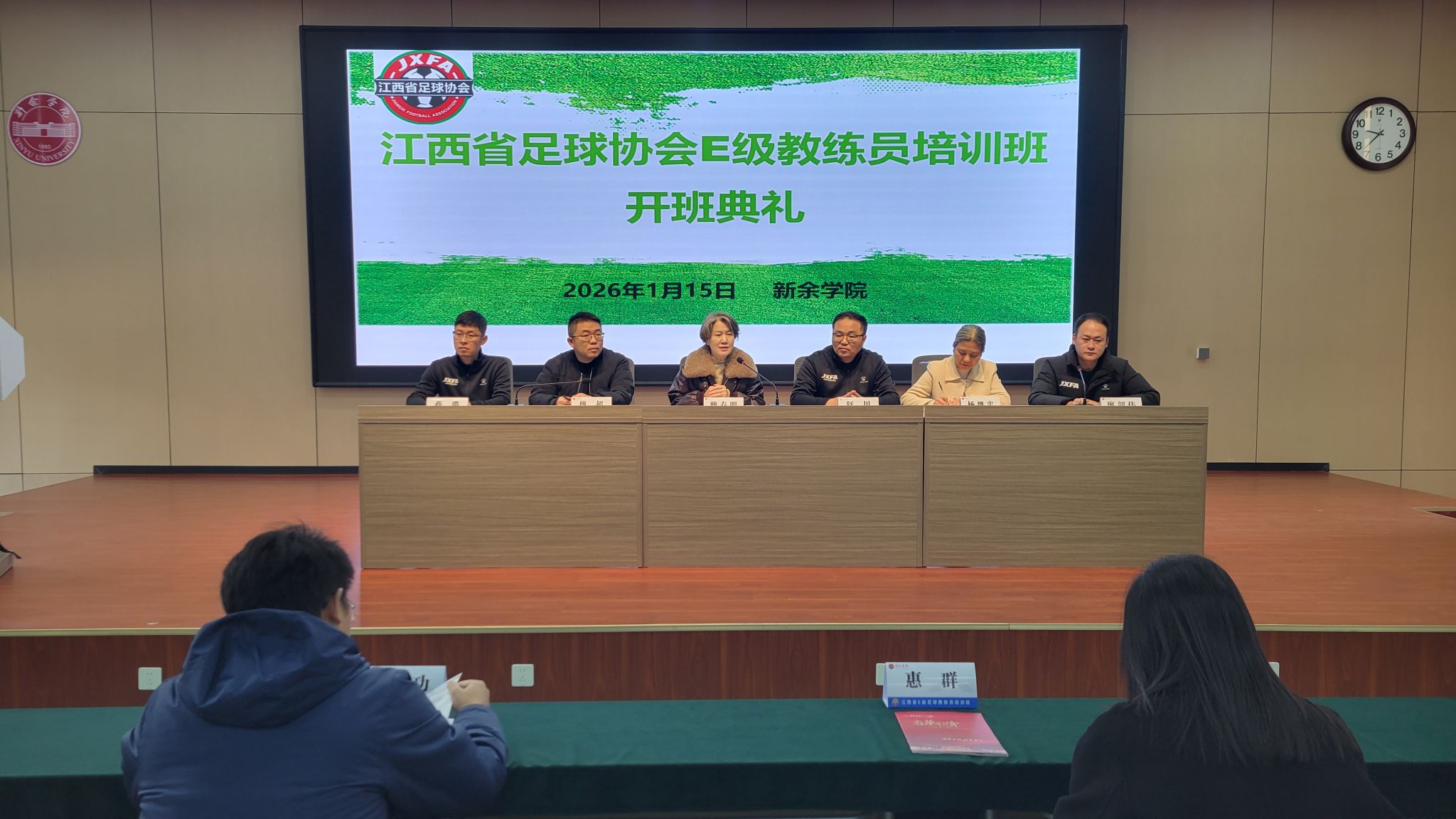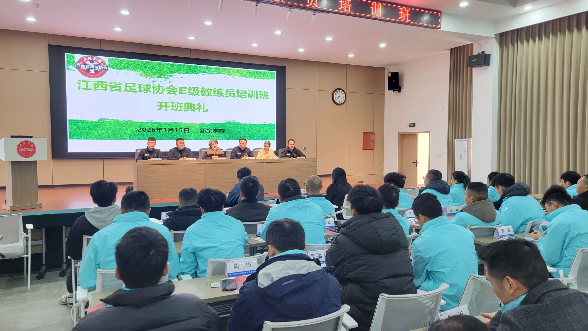 1月15日,由新余市教育体育局主办、新余学院体育学院承办的江西省足球E级教练员培训班,在新余学院思源厅举行开班仪式。来自全市中小学的30名教师齐聚一堂,开启为期四天的专业化培训,为新余校园足球注入专业力量。