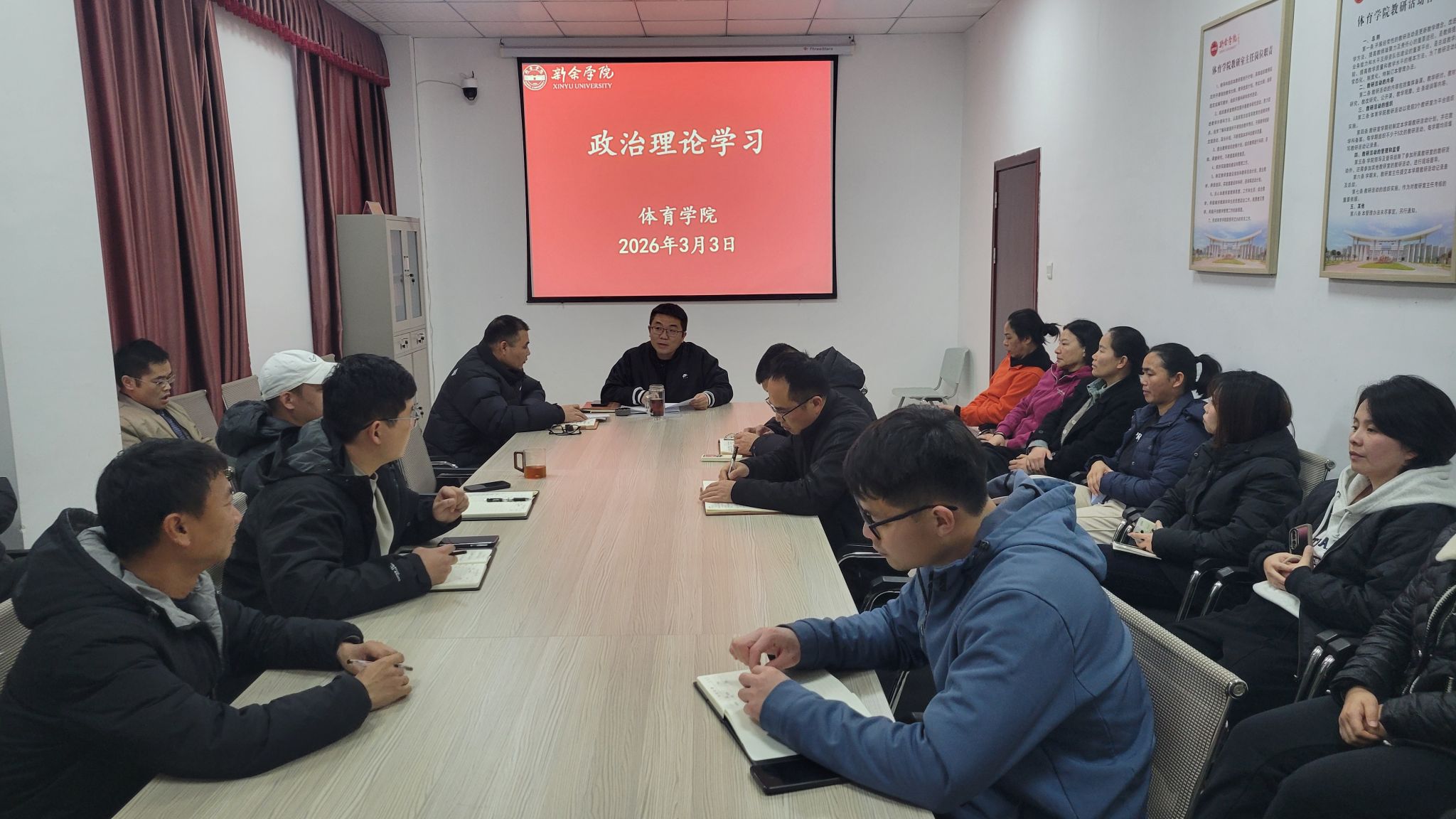 会上,傅超领学讲话精神,围绕党的二十届四中全会核心要求与学校2026年工作总体部署,结合学院教学科研、训练竞赛、人才培养、党建思政、服务保障等重点工作进行深入解读。会议强调,全体教师要提高政治站位,把学习贯彻会议精神作为当前重要政治任务,深刻领会精神实质、把握目标任务,切实把思想和行动统一到学校党委决策部署上来。
