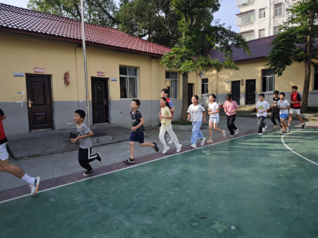 迎着早晨7点钟的太阳,新的一天从跑操开始,简单的热身活动后便是健美操早训。