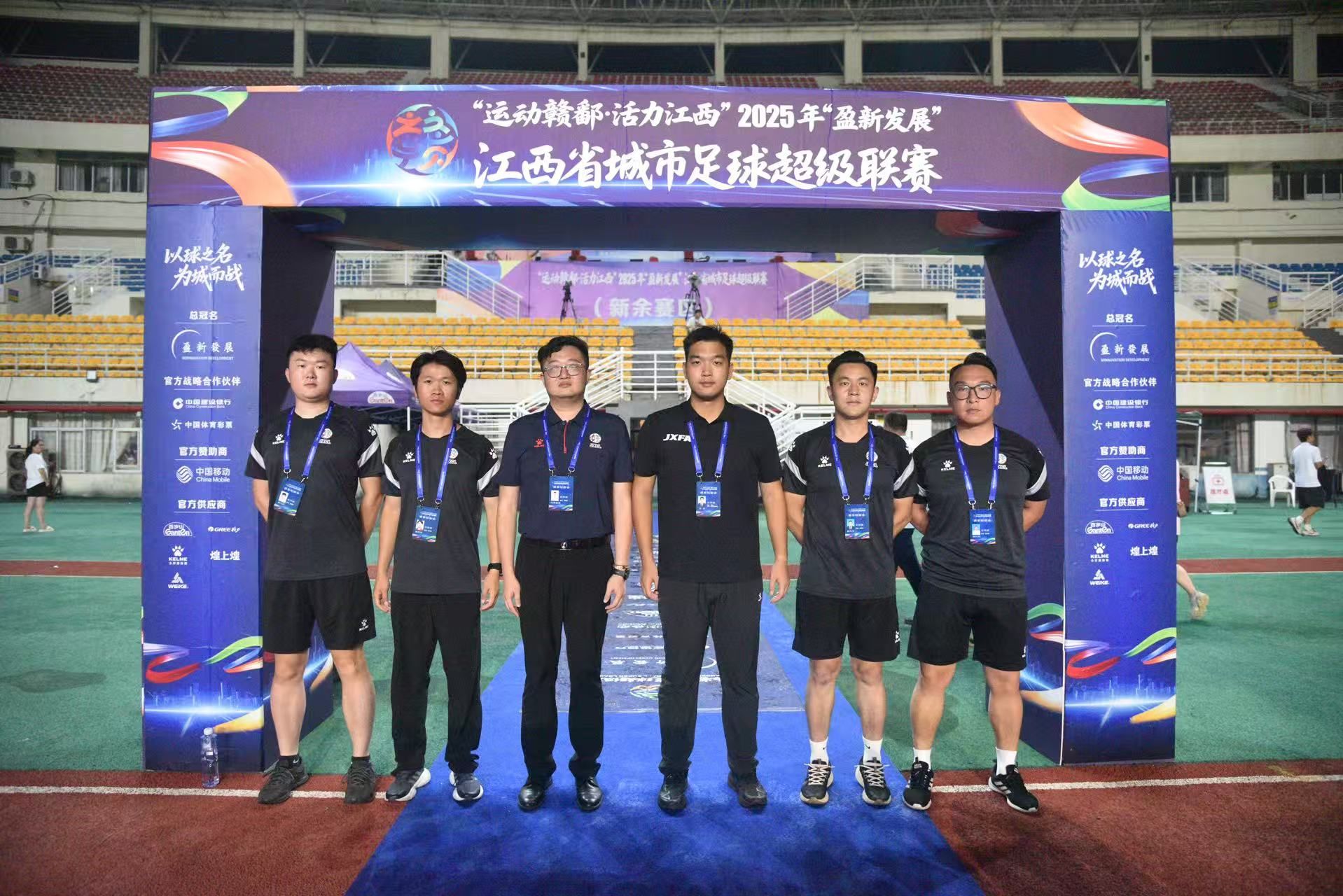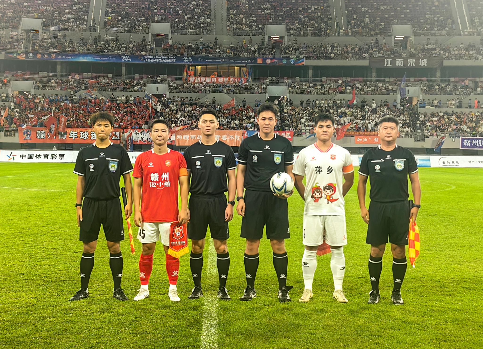 7月12日,“运动赣鄱·活力江西”2025年“盈新发展”江西省城市足球超级联赛(简称“赣超”)在南昌开幕。我校共有11名师生参与了前五轮比赛裁判工作,其中担任主裁判2场。他们以出色的执裁表现赢得广泛赞誉,展现了我校师生的专业风采。